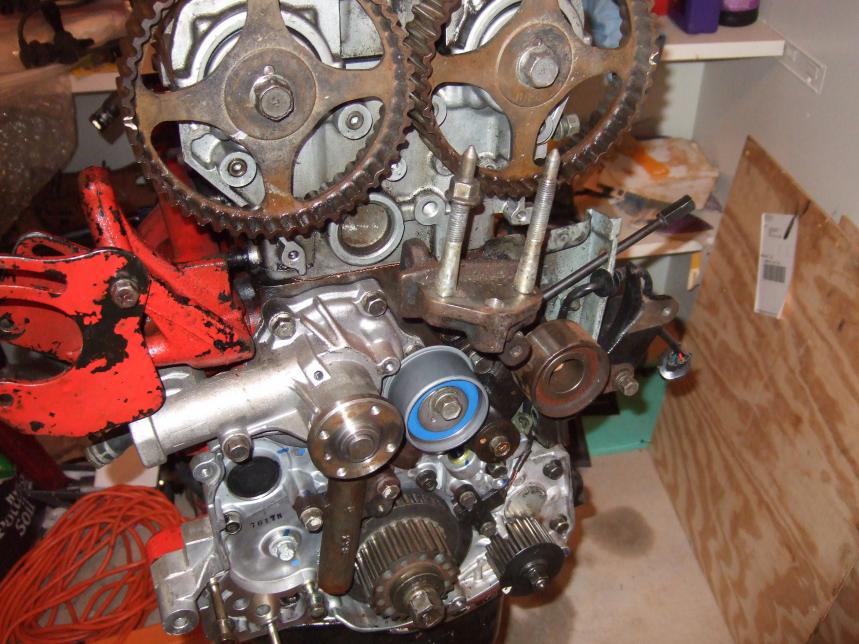 just an update for you guys... our son was born a couple of weeks back and I haven't been able to do anything with the engine until last night. The tensioner and idler pulley looked a little rusty so i replaced those. I pulled all the spark plugs and looked down into the chambers. the pistons are nice and shiney; no carbon. i can't tell if theey looked pitted or if it was air bubbles, but all the pictures i've seen online suggest that they are fine. I pulled the valve cover and the head looks brand new on the inside... its probably the cleanest head i've ever seen...