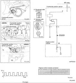 1.If an impact is suddenly felt during driving or the engine suddenly stalls during idling, try shaking the crankshaft position sensor during idling. If the engine stalls, the cause is probably improper or incomplete contact of the crankshaft position sensor's connector.