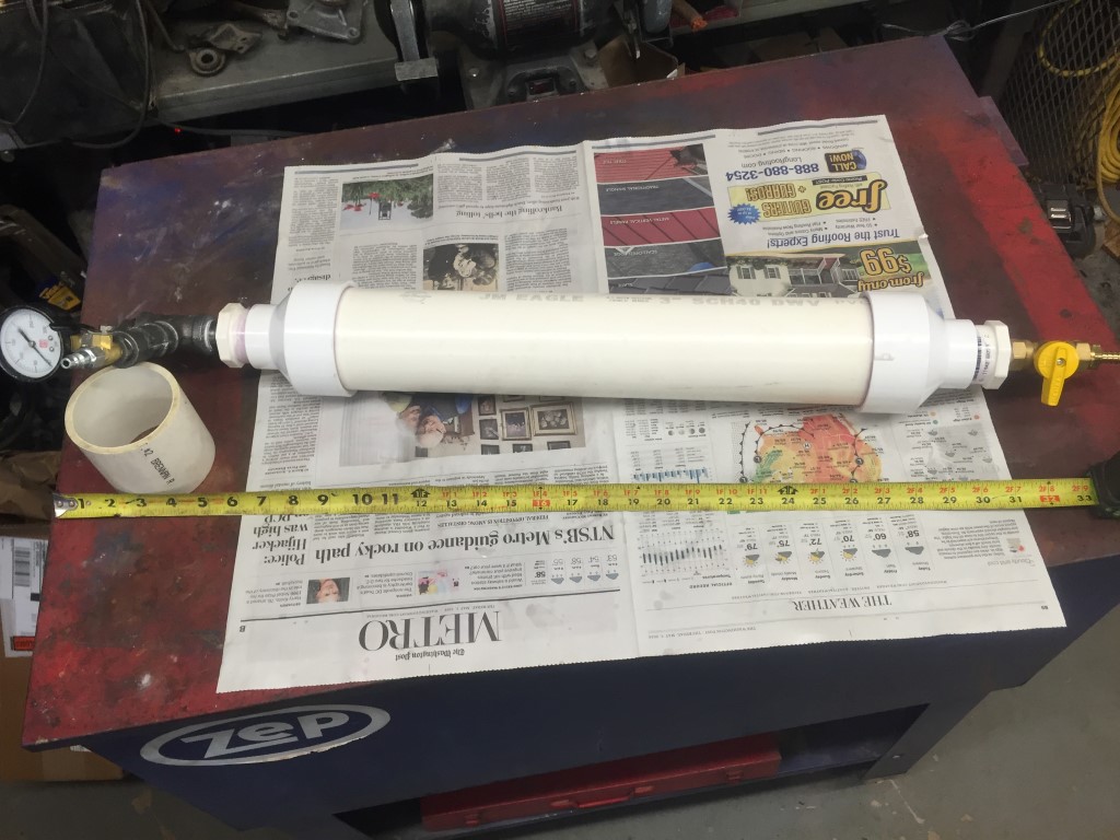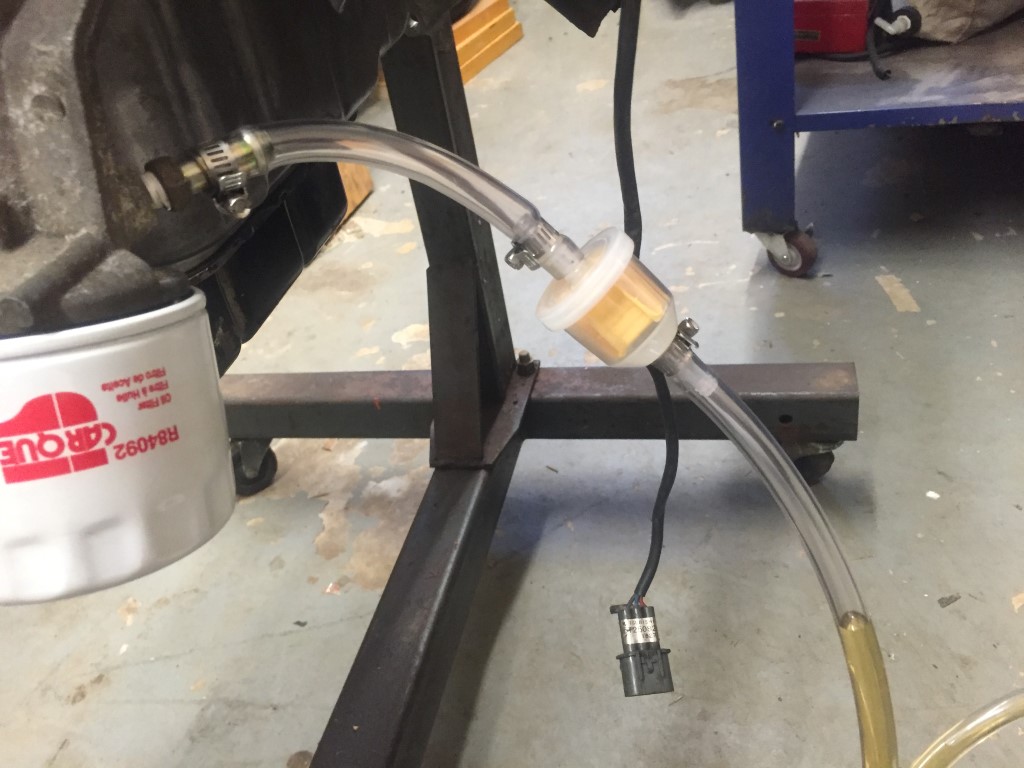 I added pictures of the ENIMA so you can see the upper and lower fittings. This let me charge the system prior to admitting oil to the engine. The plug at the top allows filling with oil. The upper PVC bushing is 3/4" NPT as are the fittings. The lower PVC bushing is 1/2". Should have made the center 3" tube portion another 4-6" longer as it did not quite hold all 5 qts (math error somewhere). All fittings were cleaned and scrubbed prior to assembly with the filter as the last item of defense.