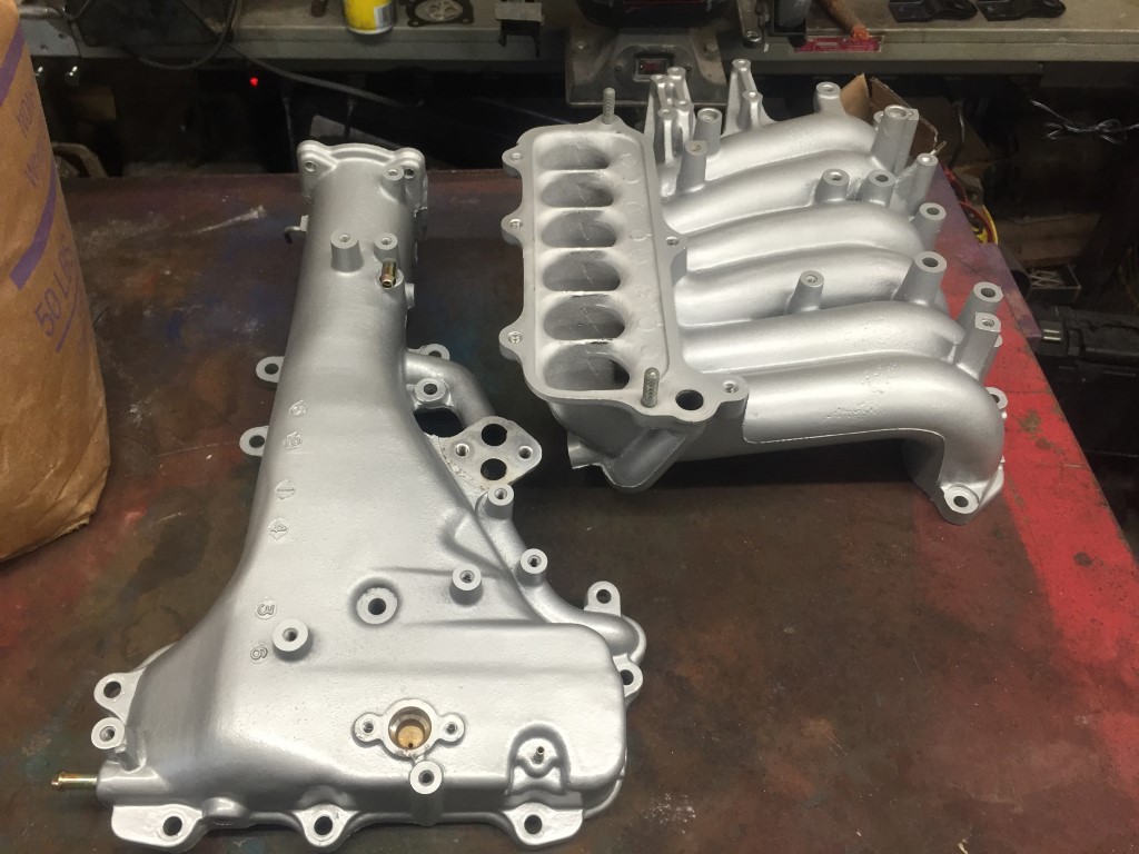 I completely disassembled the intake and plenum. Soaked it in the parts washer and used a brush to clean out all of the oily carbon residue in the ports and passages. Afterwards I soda blasted the remainder. Finally, I painted the exterior only (ports and flanges are as blasted finish) with VHT high temperature cast aluminum.