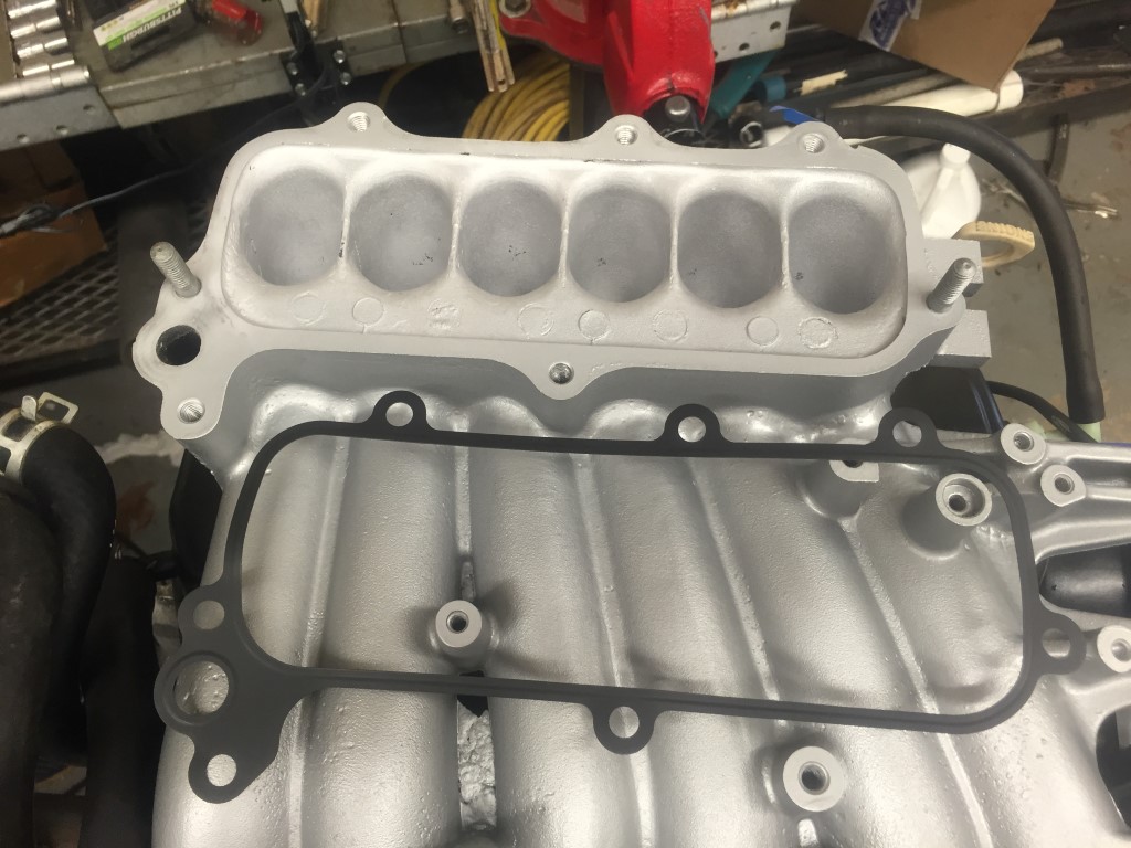 With the spark plugs and wires in position, I proceeded with the upper air intake manifold and plenum.