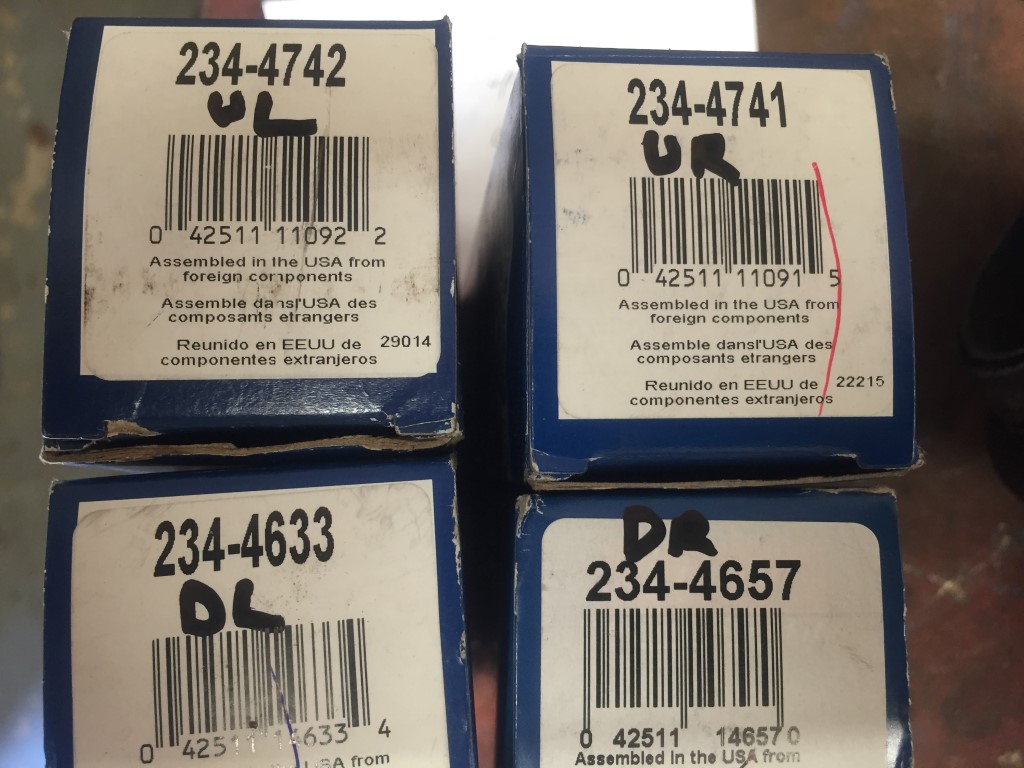 The labels are UL (upstream left), DL (downstream left), UR (upstream right), DR (downstream right). Used the copper anti-seize that came with the sensors and torqued them to spec.
