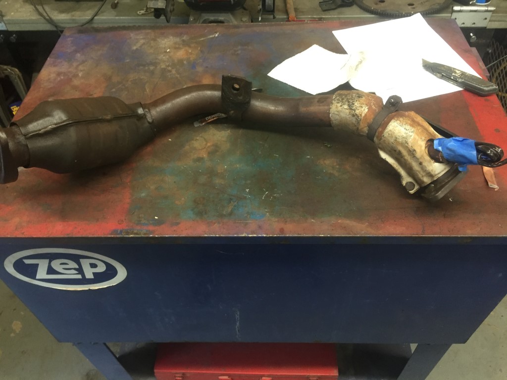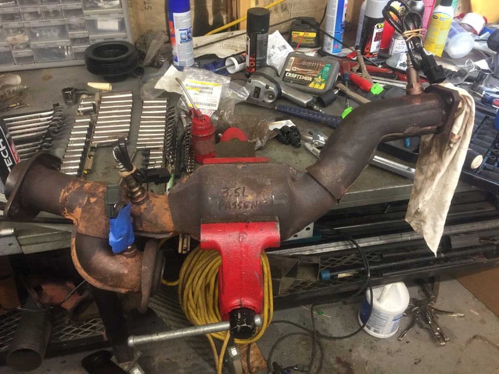 The drivers catalytic converter had a broken off bolt from removal. I soaked it repeatedly with PB Blaster and then welding a nut to it to back it off with a wrench. This did nothing but shear off the weld. Tried this 3 times.