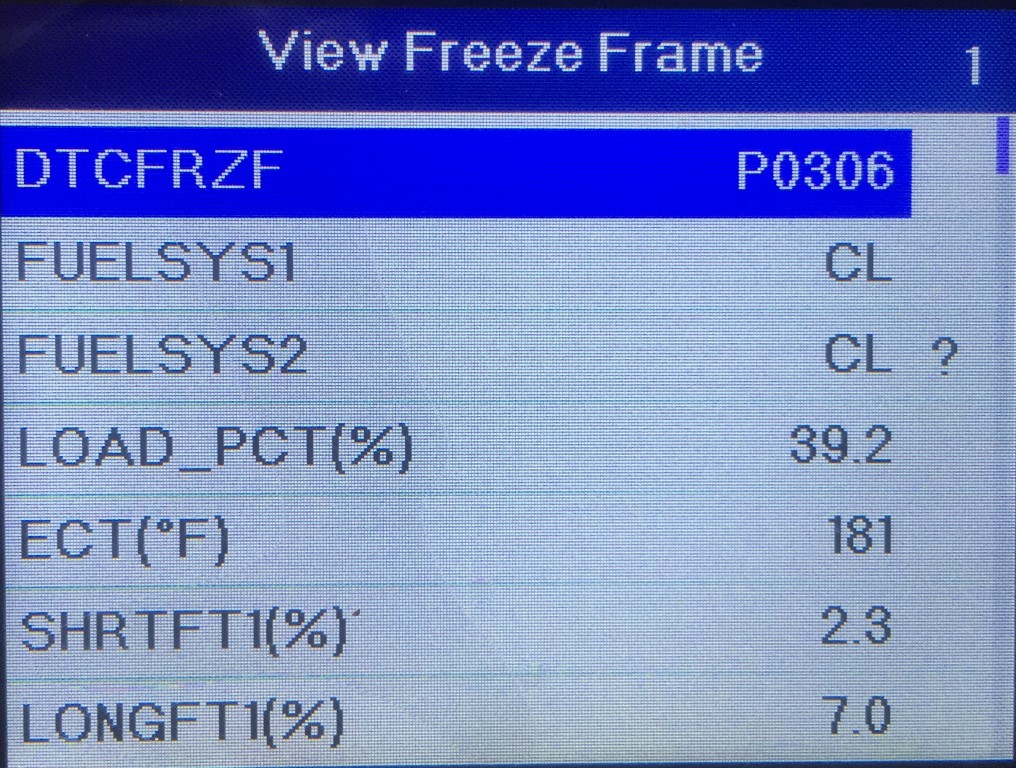 Disconnected battery (cleared codes) while I replaced the #3/#6 coil pack with a new one from Napa and installed plug wires in proper orientation. Still have a miss at idle, drove 20 miles, no code. Next morning, started vehicle, let it idle and come up to temperature before driving. Upon acceleration out of the driveway, promptly set P0306 again with P0431 pending. Screen shots of the Freeze Frame data are attached. Any insight from the Freeze Frame data?