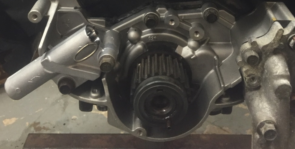 I cleaned the water pump bore one last time and inserted the wet o-ring into the bore.