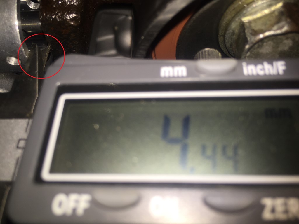 The cam belt tensioning tool I made worked very well. As you apply torque to the pulley, the eccentric of the pulley forces the tensioner arm against the plunger of the hydraulic tensioner. This forces the plunger slightly back into its bore. If properly done, the forced retraction of the plunger is just enough so that the grenade pin is freely removed (see video). Lastly I measured the plunger protrusion after pin removal and it was in spec.
