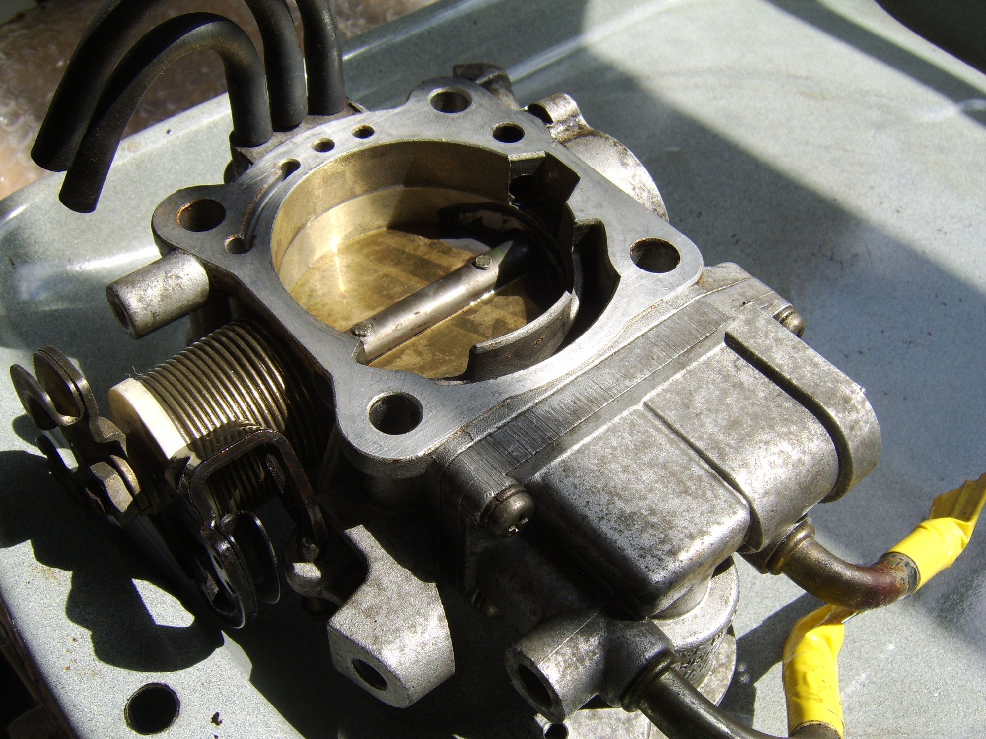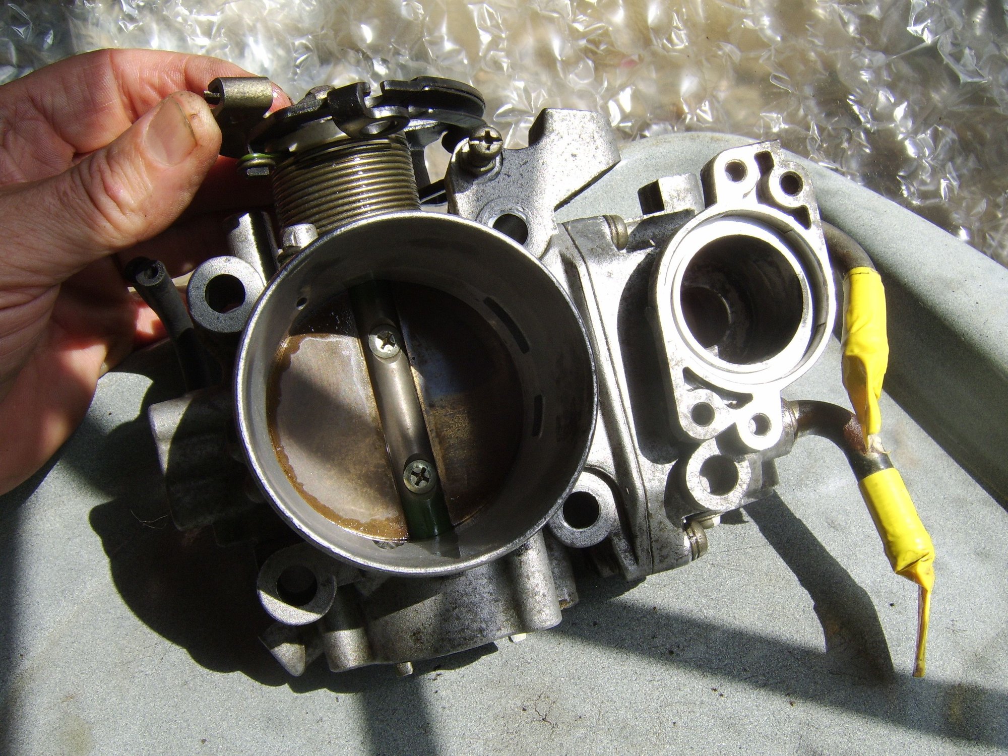 Removed the Throttle Body and cleaned. As the pic shows, the inner portion of the butterfly side was not very bad: