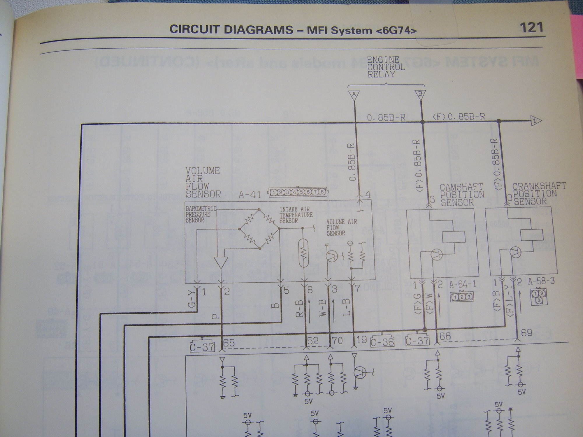 I tried to take some pics of the electrical configuration shown in the shop manual. The first couple pics are from Page 121, and the lines connect to Page 122, which I will then paste below:
