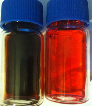 The left bottle is the fluid in my montero now the right is brand new fluid for reference there about 1/4" deep.