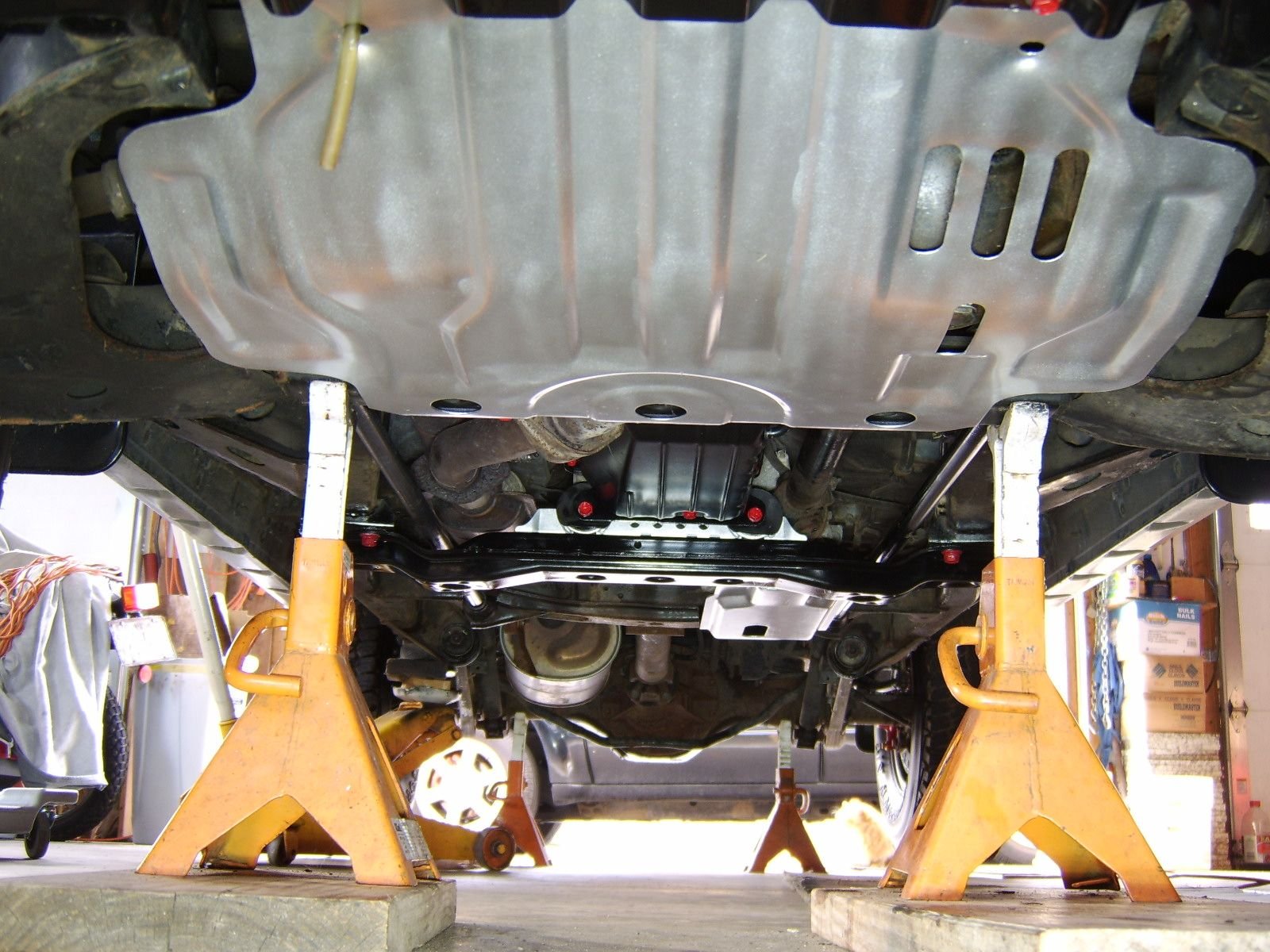 If you have access to a sheet metal bending machine, you can make your own skid plate. I had to make one for my engine after the wimpy plastic thing fell off. Just used a sheet of 3/16 steel (I think that's the thickness, perhaps less) that i had around. Its heavy as heck, but its not going anywhere and it really protects the bottom of the engine.