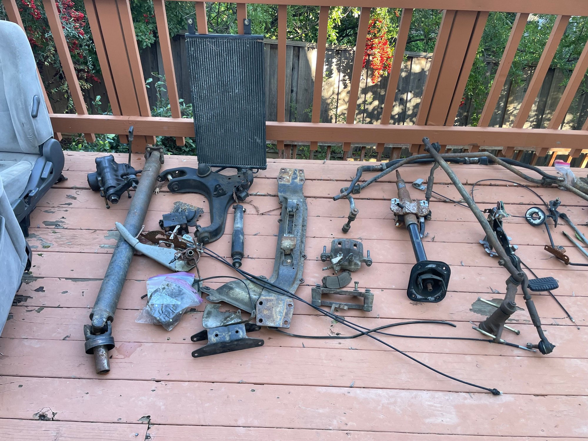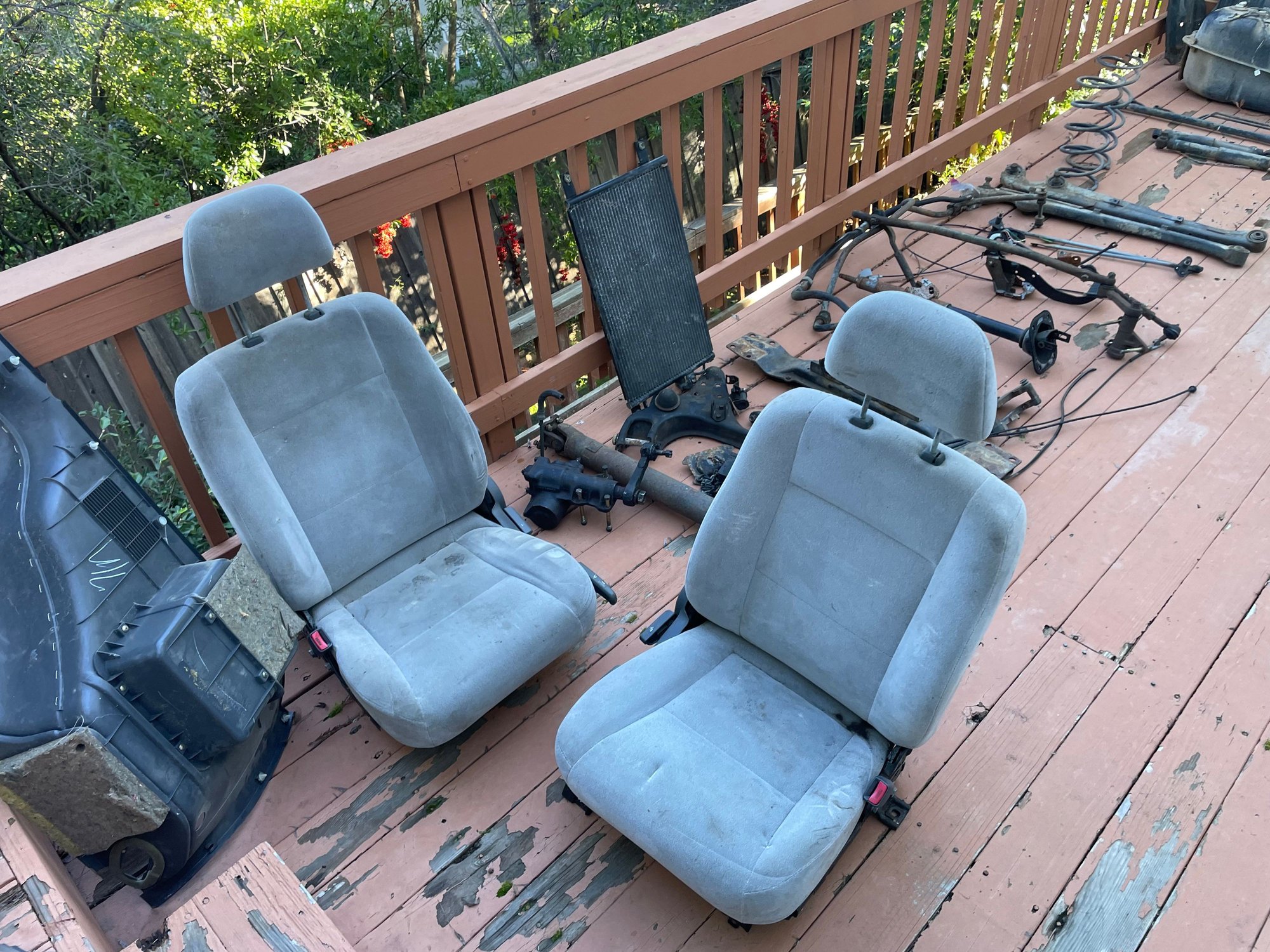 Lots of parts ready for sale from my 2002 Mitsubishi Montero Sport LS 4WD. Car was in great shape but a big crack in the passenger side exhaust manifold (like most of them) and the cats were fried - so couldn't pass California smog without $ thousand in repairs. See pics but lots of parts available. Already sold was old cats, engine, transmission (transfer case still available $100), wheels, bumpers, radiator, front axle. Car was in great shape before disassembling, 230k miles. All parts $50 or less! NO SHIPPING NO SHIPPING. LOCAL PICKUP in Pleasant Hill, CA 94523 or Sacramento, CA 95864. LOCAL PICK UP ONLY