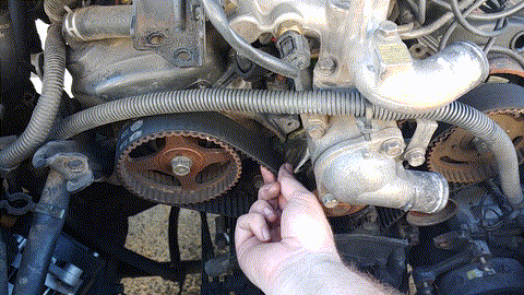 Tore down the front end to replace a water pump and some failed gaskets and found some slack in the timing belt. Tensioner has failed, only thing stopping it from destroying the engine was metal on metal contact between the tensioner body and eccentric tensioner arm.