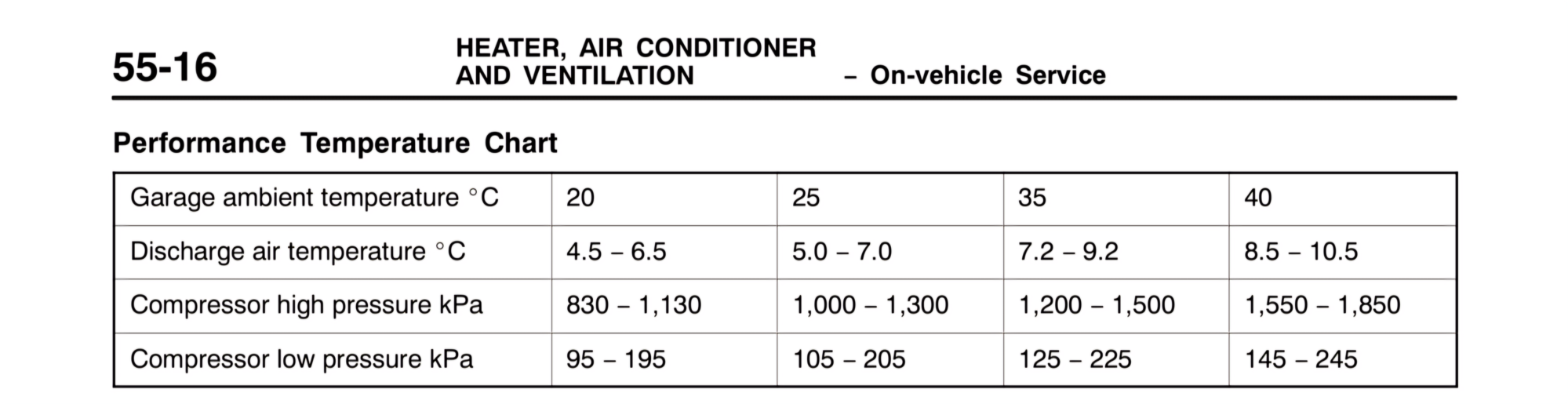 It was about 75 F while testing, full cold, recirc on, and I was getting around 42-46 coming out of the center vent, same temps coming right off the evaporator. According to this chart, that's right about where they should be. But I took it on a drive for about 30 minutes or so and I just never felt comfortable, even though temps stayed around 42-46. Out of curiosity, I tested my mom's suburban (which I know gets plenty cold even in the heat of summer) and it's around 42 coming out the vent!!!