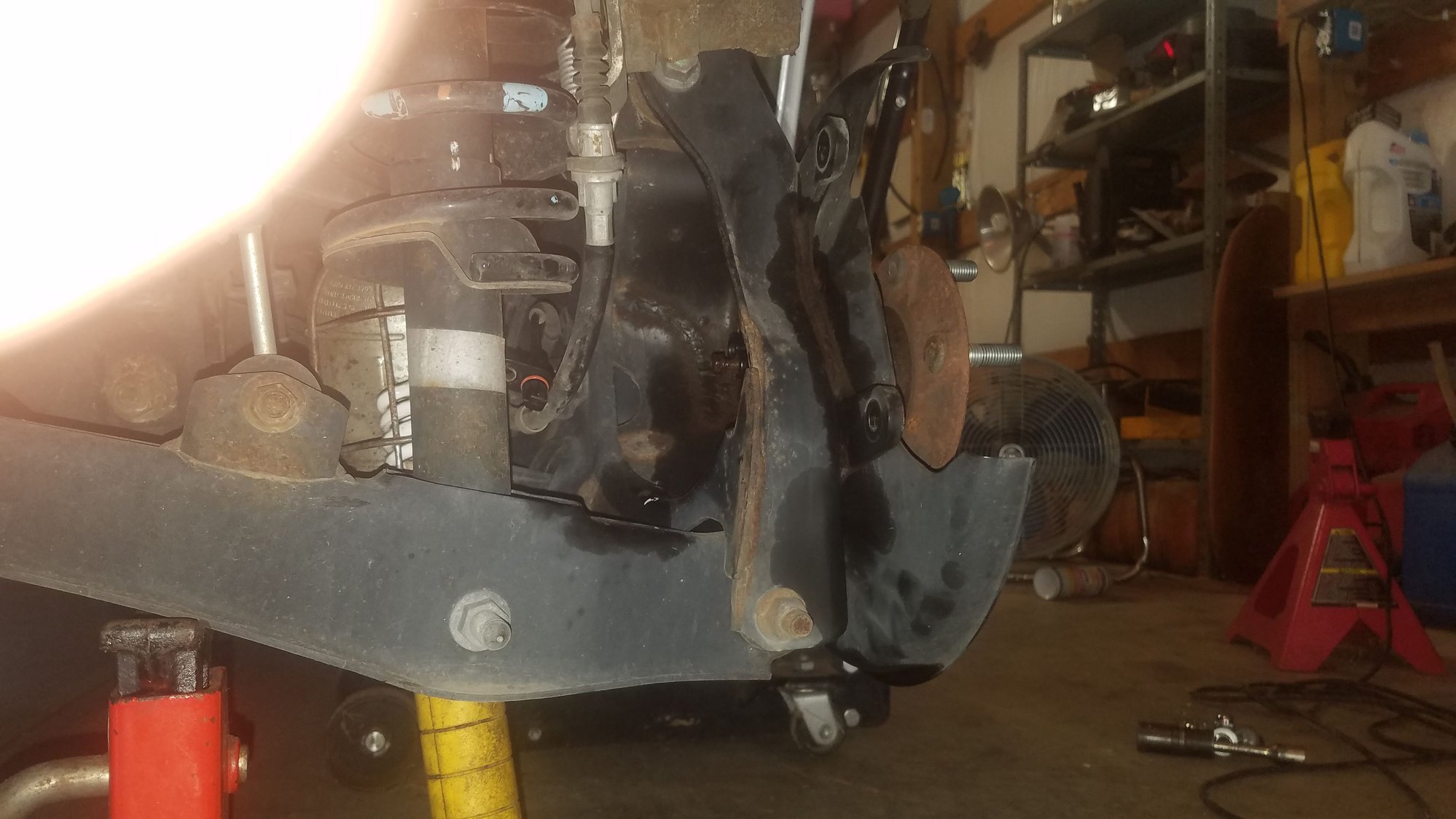 The passenger side rear bearing is bad. I have rotor off and 4 bolts out on backside of bearing hub but it still doesn't seem to want to come off. Is there something else I need to do?