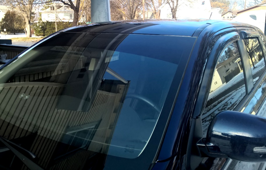 I got the windows' tinted the other day. Not the greatest pics (dammm winter weather) Got a nice banner portion on the front windshield, didn't go to dark on the fronts but it's better than the plain glass.