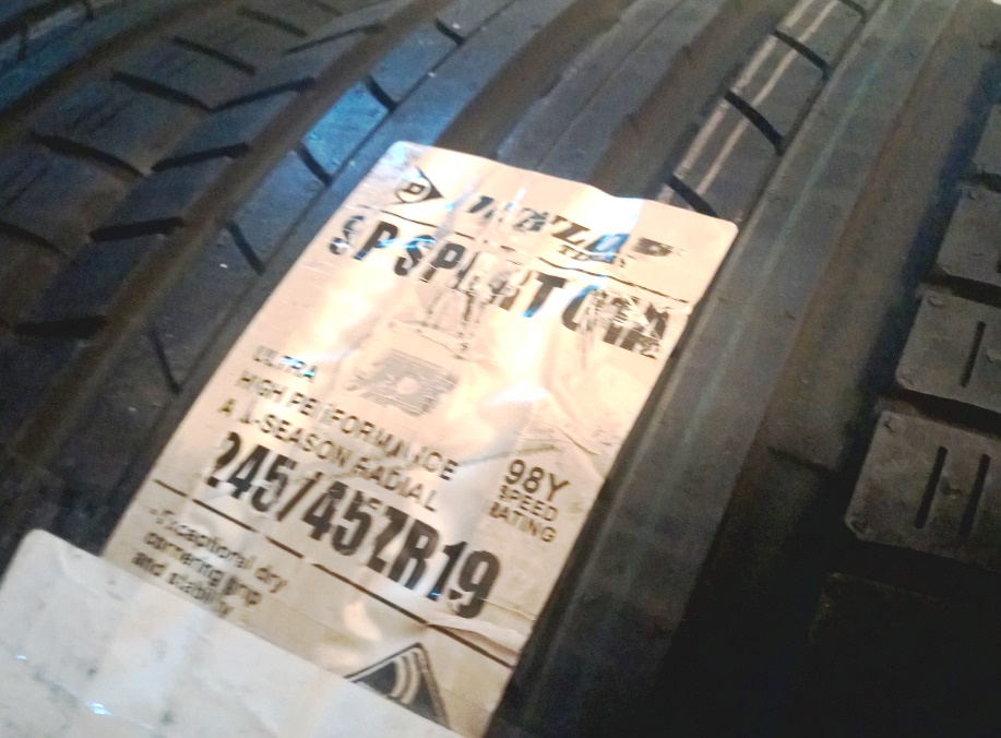 245/45/19's with less than 20 miles on them. (driven over to the tire shop after new purchase).