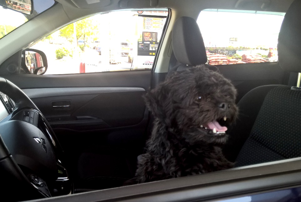 He's always wanting to go for a ride. He's pretty well manner'd when we're riding, he likes to bark at people.