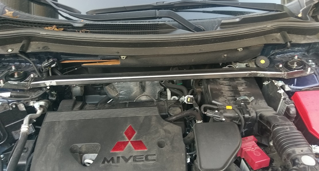 I can't believe how much body flex the outlander had over the OS. and my previous OS also ran the Ultra Racing strut bar. I modeled this bar after that one (beefier tho) and this thing has really stiffened up the body. It's much more stable over bumps and more in control when cornering. Best I've personally done for it's handling aside from the performance tires. On to the pics.