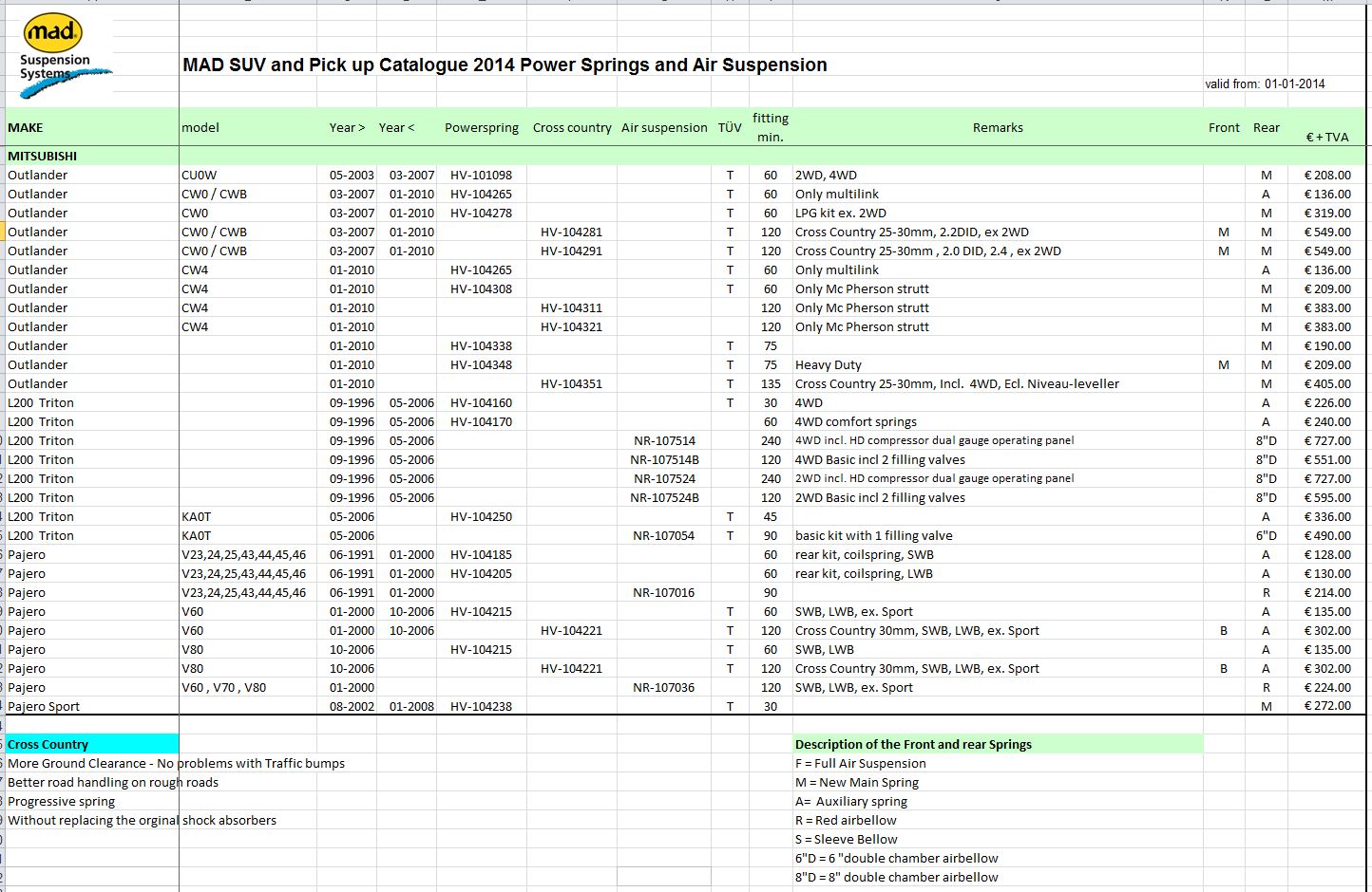 Here's a crop from a MAD catalogue for different springs for Mitsubishi models: