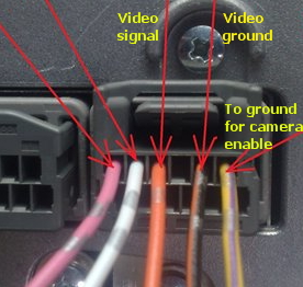 So that’s how you connect the video cable to the mmcs, then as for the rest you just connect the camera power to the reverse light power +12V and neg. On my lancer it is a thick white wire for the +12V and a black for neg.