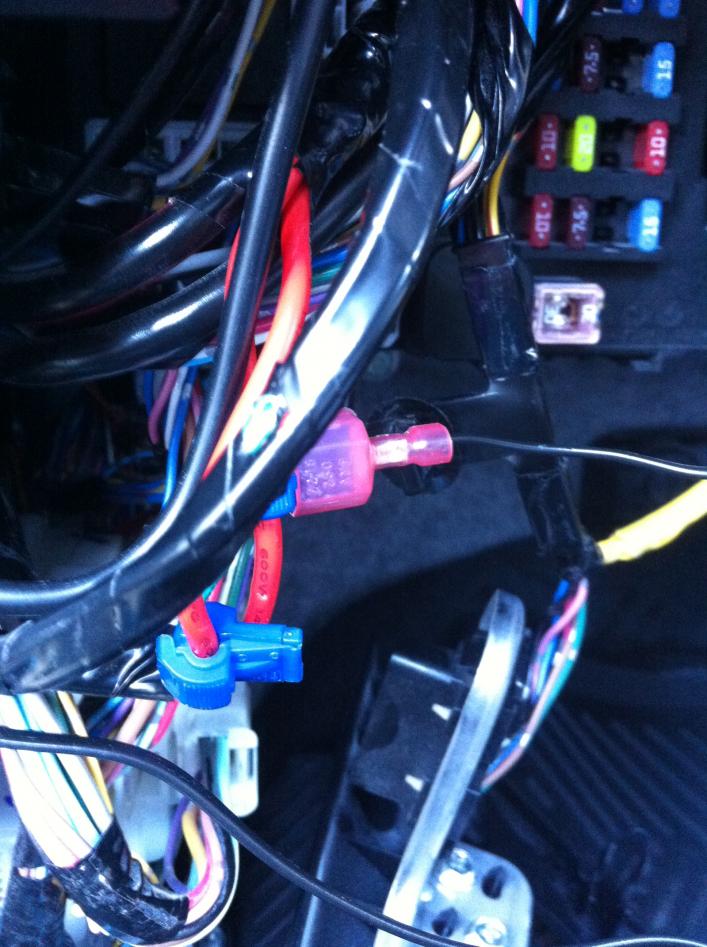 In the pictures there are 2 red cables that are constant technically, when I measure they seem this way, hence this is why you see 2 taps = I screwed up. I have to find the green wire that came off the ignition.