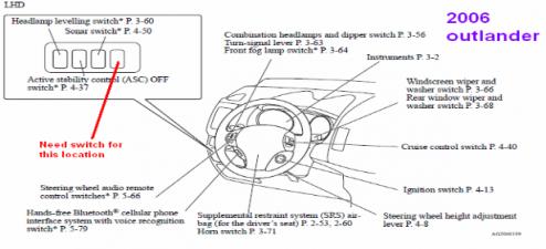 I tried to do my homework and research to locate a FOG LIGHT SWITCH for my 07 Outlander XLS. I understand that it doesn't come with a switch because the HID lights are bright enough. I just don't like the day time running lights being on and NO switch to control them.
