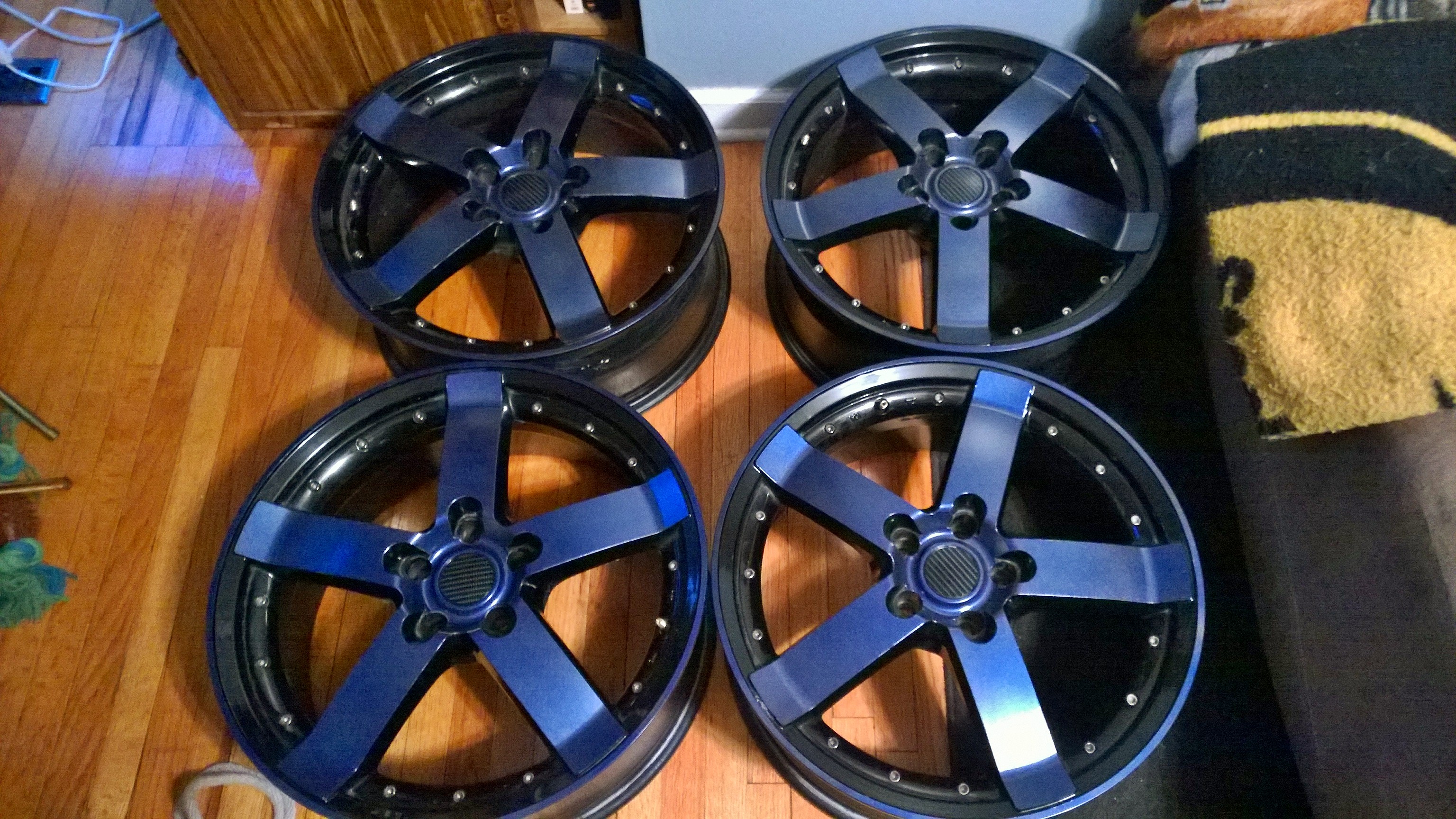 Best shot here with them on the Big O. They used to be on my Sonata, but I kept them when I got this ride and put on some Dunlops for summer. They are ASA light weight wheels that I custom painted to match my car. They were a perfect fit the Blue Outlander as well. There's a Pikes Peak Outlander from 2014 that has some custom strips that cover the body seam down below the handles. Not a bad look, but not something you get without a custom order probably.