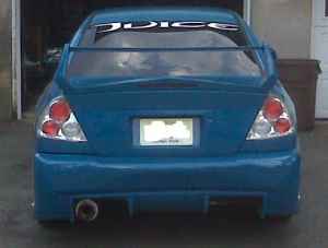 clear and stock tail lights, after market evo 5 wing bumper carbon fiber hood , full carbon fiber dash kit with air and volt gauges, front and back windshields in perfect condition, short ram intake,