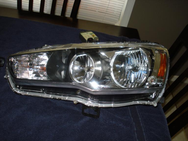 Used set of Lancer GTS headlamps for sale. These lights are plug and play with your factory wiring harness and will fit any model 07 and up lancer, ralliart, Evo. The HID'd were a dealer intalled option and are converted Halogen assembly's not Evolution lights. The wiring was done flawlessly and the range on these things is phenominal. I had to look up a picture of Evo headlights to tell the difference when lights are off. With lights on no difference can be seen between the two. Minimal road rash and very well taken car of. Price is firm. Contact me for pictures
