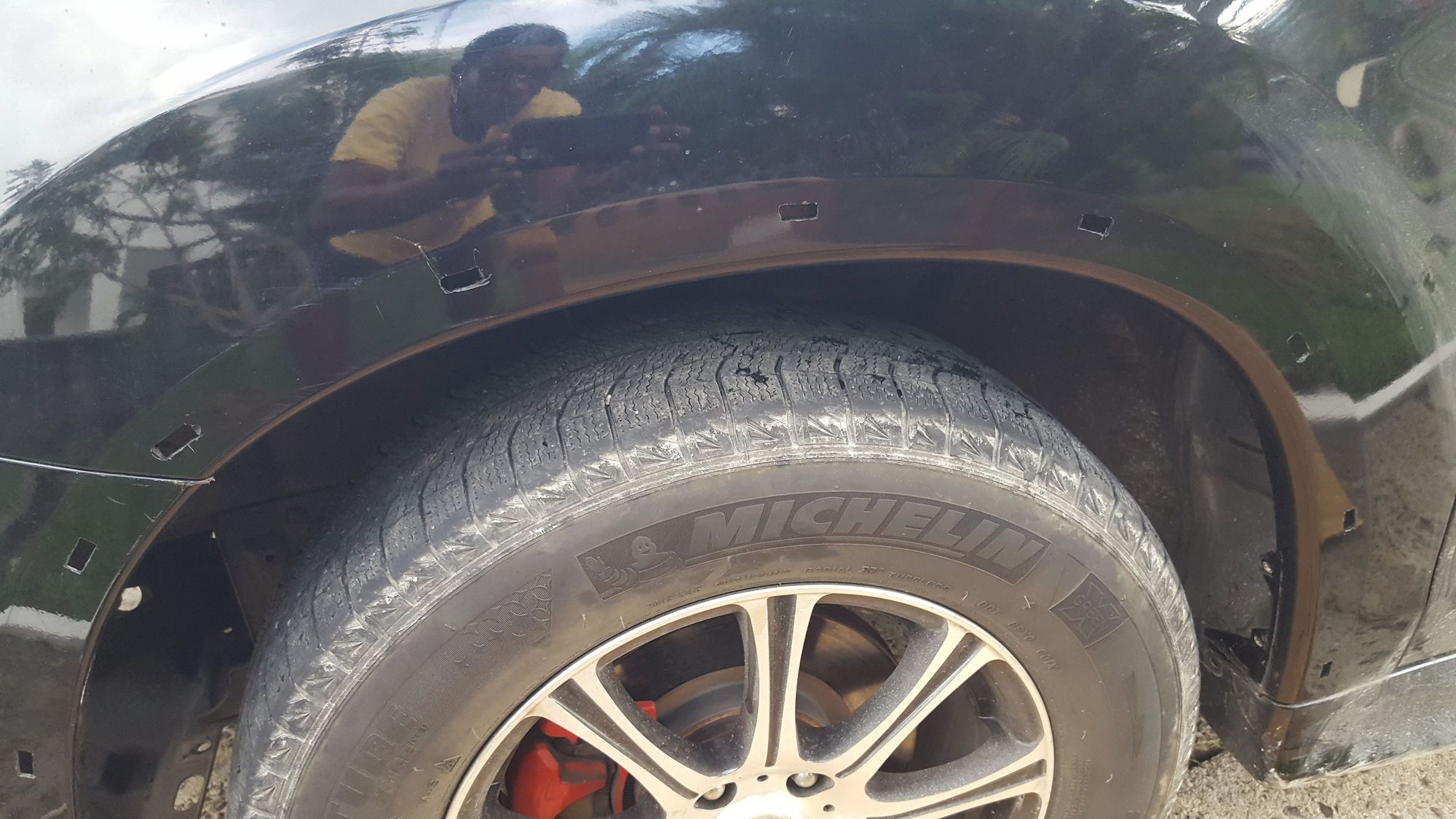 Pic of the holes cut into the fender. Holes actually come pre cut in the bumper as you can see so the makes it a lot easier to continue.
